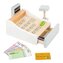Peníze se jen sypou! Tato krásná dřevěná pokladna patří do každé dobře organizované dětské prodejny. Hraní s touto hračkou pomáhá dětem pochopit ceny zboží a manipulaci s penězi. Součásti jsou bankovky na hraní a dřevěné kreditní karty, které se pohodlně vejdou do spodní zásuvky. Cena zakoupeného...