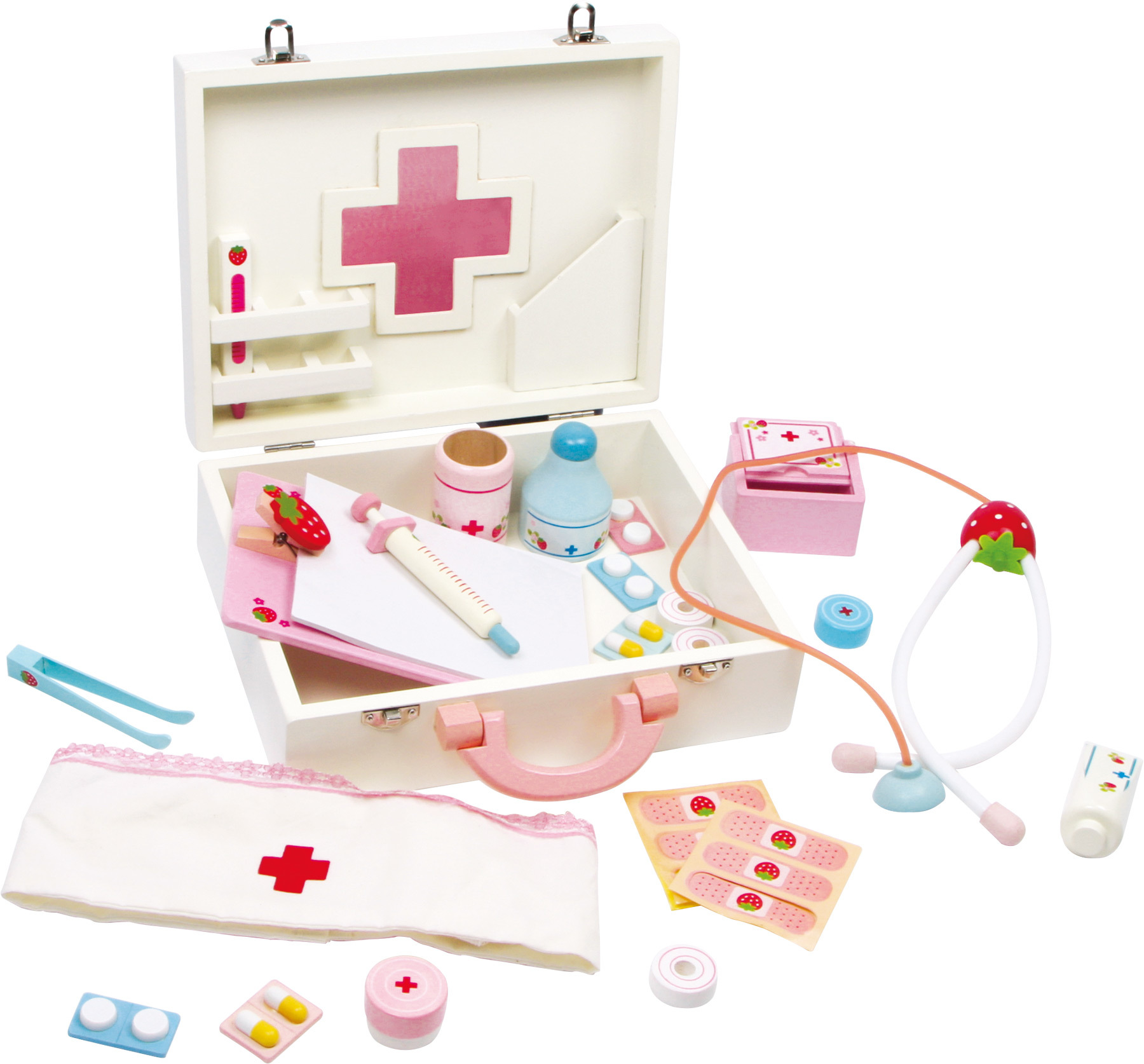 - Zawiera 28 elementów różnobarwnego wyposażenia medycznego.