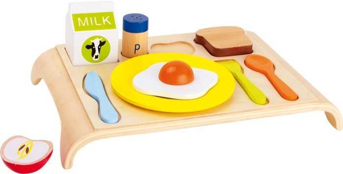 Vše, co potřebujete pro dobrý start do nového dne, najdete zde na tomto tácu jednotlivě uložené: mléko, toast, vejce, a pepř, k tomu ještě talíře a příbor. Malý kuchaři si zde mohou zdokonalit s doplňky hrací kuchyňky a trénují si jemnou motoriku.Německá firma Legler zaměřená na výrobu kvalitních...