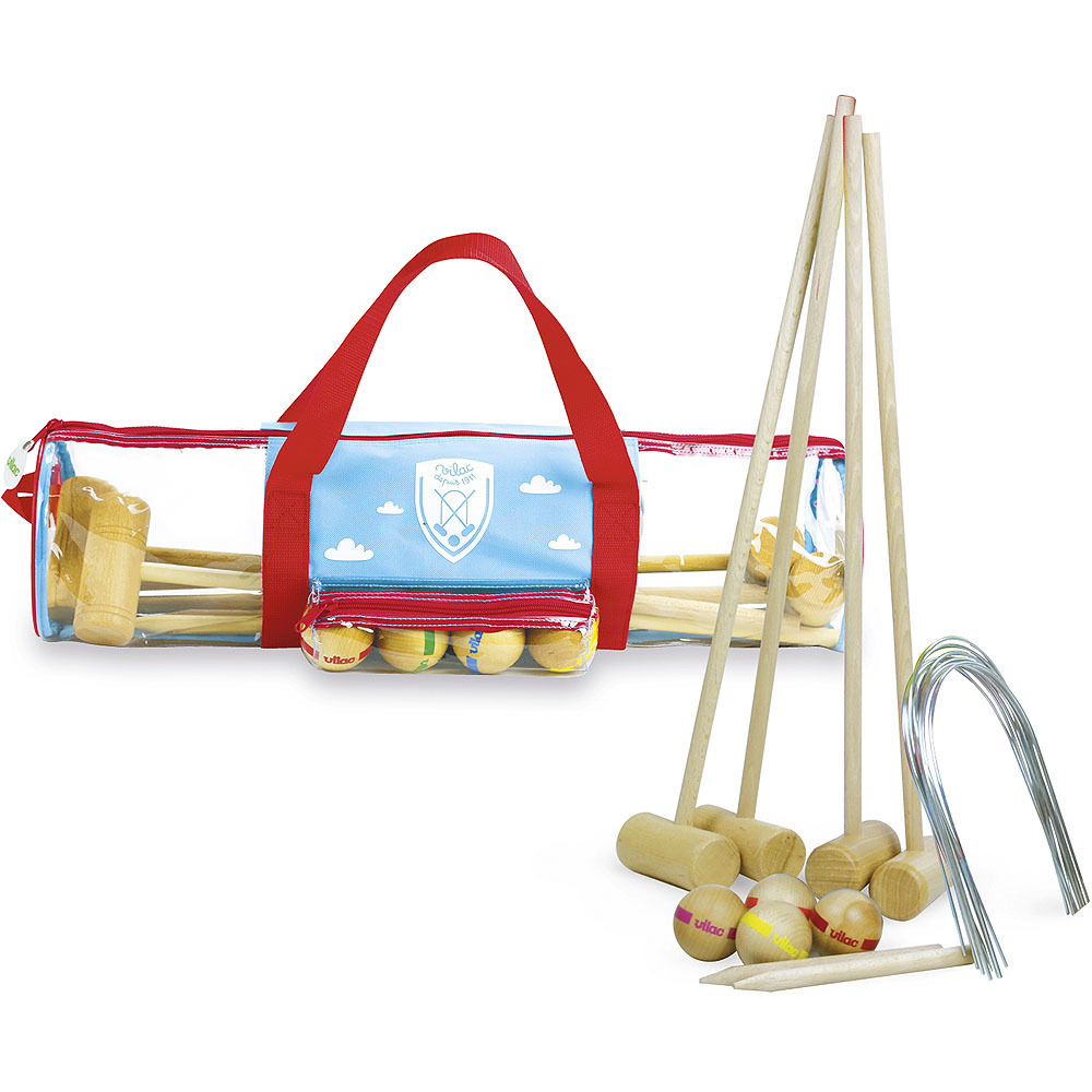 Tradiční dřevěný kroket v tašce, pro jednoduchý přenos. Můžete hrát kdekoliv je libo! Balení obsahuje 4 míčky, 4 palice, 2 kolíky a kovové branky. Vyrobeno ve Francii. Hračky Vilac mají značku francouzské agentury ADEME, to znamená, že tyto dřevěné hračky jsou vyráběny ekologicky. Šetří životní...