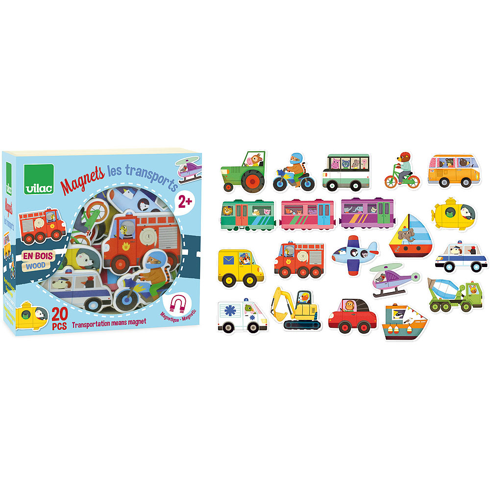 Każdy zestaw zawiera 20 wysokiej jakości drewnianych magnesów z motywami ze świata transportu, które wciągną dzieci do zabawy pełnej fantazji. Marka Vilac, z siedzibą w malowniczym paśmie Jury we Francji, produkuje swoje zabawki w sposób ekologiczny z dbałością o środowisko. Te drewniane magnesy oszczędzają glebę, wodę i powietrze, a jednocześnie zapewniają bezpieczną i trwałą rozrywkę.