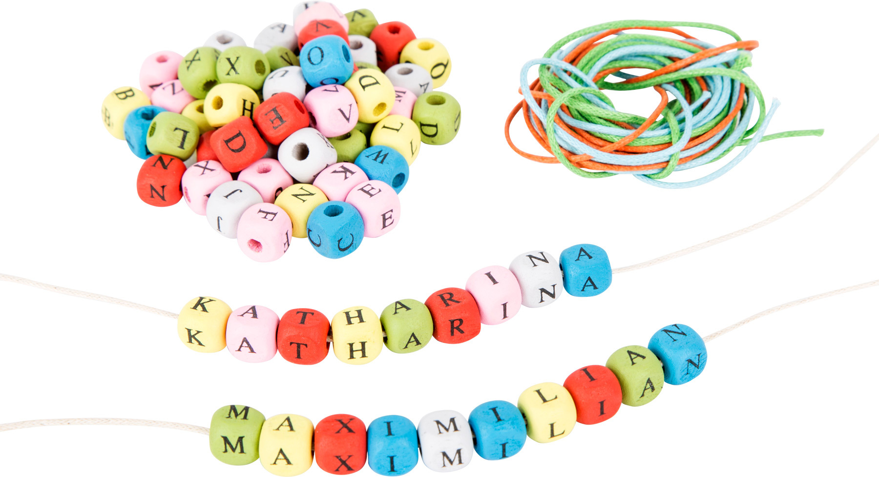 Small Foot Dřevěné barevné navlékací korálky písmenkové