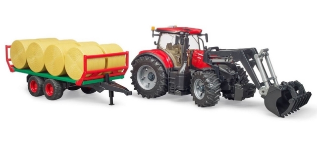 Bruder Traktor Case IH Optum 300 CVX s čelním nakladačem a přepravníkem na balíky