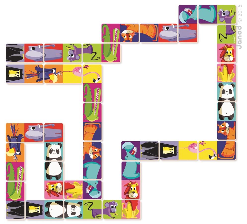 Dětské oboustranné domino Džungle Janod se zvířátky 28 karet od 3-7 let