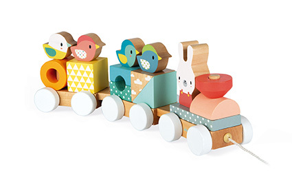 Dřevěný vláček Pure Janod na tažení je nádherná hračka pro dětičky od 12 měsíců. Vláček si mohou poskládat podle svých představ, protože každá část se dá z něj složit a vložit na jiné místo. Na vláčku je větší zajíček a kostky - vagóny, na každé kostce sedí roztomilý barevný ptáček. Děti si mohou...