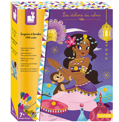 Kreativní hračky na tvoření Obrázky s flitry přišívání Tisíc a jedna noc Janod Atelier