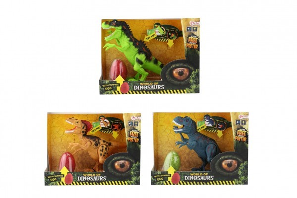 Dinosaurus plast 28-30cm na baterie se zvukem se světlem 3 druhy s překvapením v krabici 29x22x10cm