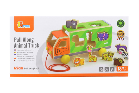 Dřevěná tahačka kamion se zvířátky