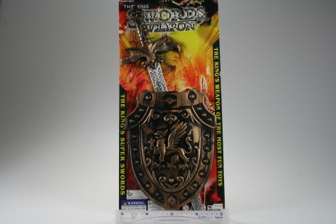 Meč o délce cca 49 cm a štít o rozměrech cca 20 cm X 26 cm.Věk 3+ przeczytaj całość