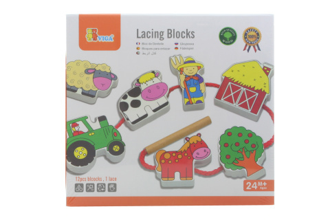 Drewniana nawlekanka Farma zawiera 12 kolorowych drewnianych klocków oraz jedną praktyczną sznureczek do nawlekania. Dzięki prostemu wzornictwu i przyjemnemu materiałowi dzieci mogą łatwo ćwiczyć koordynację wzrokowo-ruchową oraz rozwijać logiczne myślenie. Dodatkowo całość jest przechowywana w praktycznym pudełku, które służy jako schowek - zabawka pozostaje zawsze uporządkowana i łatwa do przenoszenia.