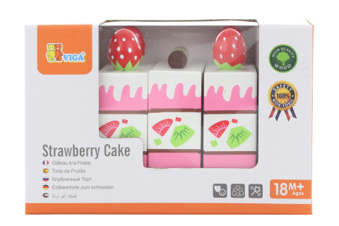 Dřevěné krájení jahodového dortu. Balení obsahuje 3 kusy dortu na suchý zip a dřevěný nůž. Rozměry dortu cca 9,5 x 8 x 7 cm. Rozměry balení cca 16,5 x 11,5 x 8 cm. Věk 18m+ przeczytaj całość
