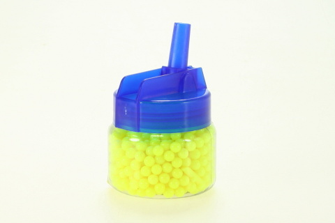 Balení kuliček do pistole v plastové dóze. Pro lepší manipulaci obsahuje trubičku pro vysypávání kuliček. Výška dózy cca 6,5 cm, průměr cca 5,6 cm. Věk 3+. przeczytaj całość