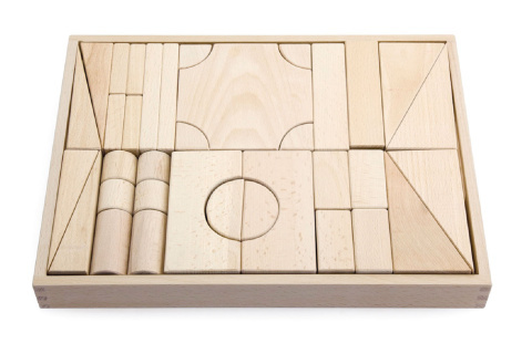 Dřevěná sada kostek na dřevěném podnosu. Rozměry sady cca 39,5 x 29,5 x 4 cm. Věk 24m+ przeczytaj całość