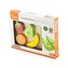 Zestaw zawiera kolorowe drewniane owoce połączone rzepem. Dzięki temu dziecko może owoce kroić nożem i znowu je łączyć, co poprawia koordynację ręka-oko oraz rozwija kreatywność. Deseczka ma wymiary około 22 x 15 x 2,5 cm, więc jest wystarczająco duża, a jednocześnie bezpieczna dla dziecięcych rączek. Opakowanie o wymiarach ok. 27 x 21 x 3,5 cm sprawia, że wszystko jest przejrzyście i schludnie uporządkowane.