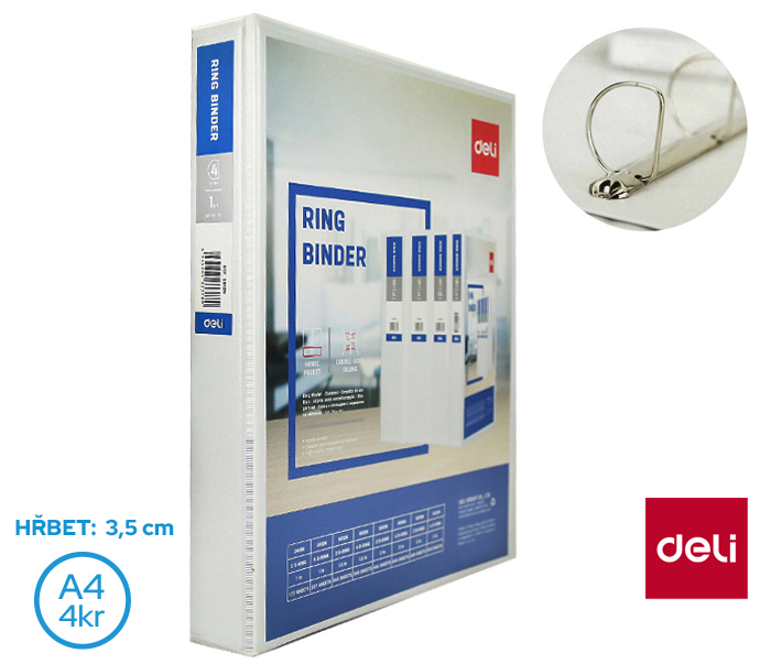 Pořadač A4/35mm 4 kroužkový \"D\" 20mm DELI E5612N