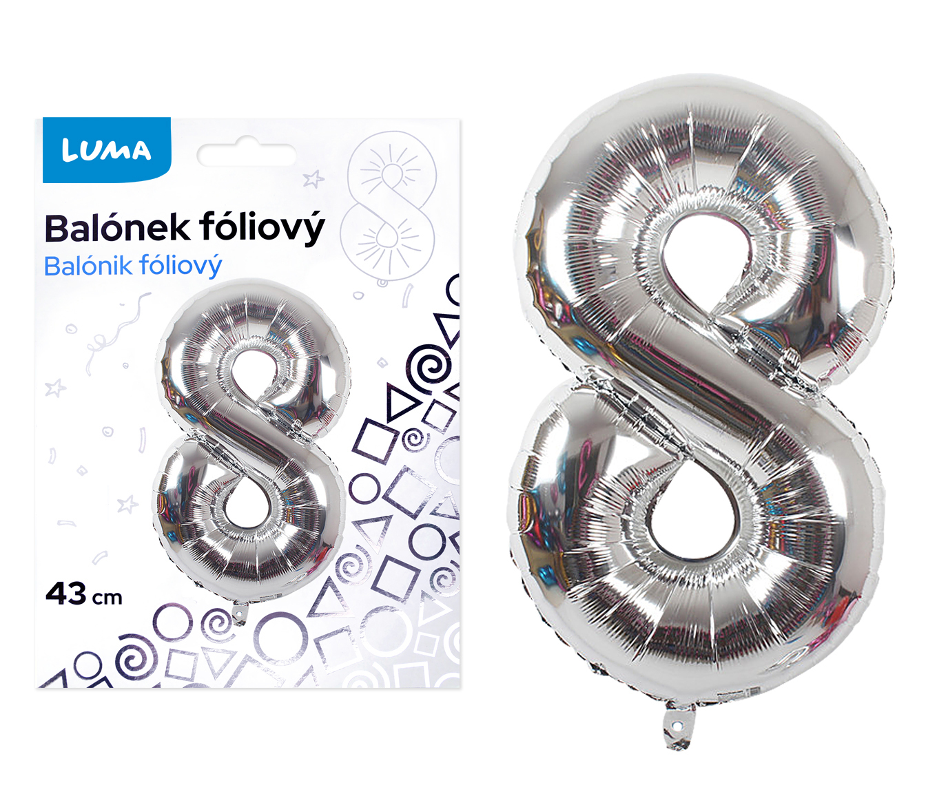 Balónek foliový č. 8 STŘÍBRNÝ 40cm LUMA