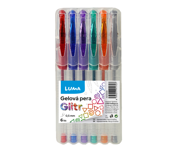 hladké psaní- GLITTER gelová náplň- šíře stopy 0,5 mm- průhledné tělo s uzávěrem- velká kapacita inkoustu- pogumovaný úchop przeczytaj całość