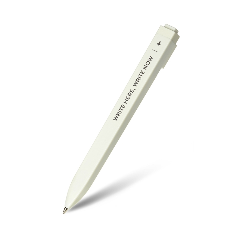 Lehká bílá propisovací tužka z ABS plastu. Je vybavena klipem, který je možný připnout k zápisníkům Moleskine. Propiska je hranatá, má černou vyměnitelnou náplň.Prodává se bez obalu. przeczytaj całość