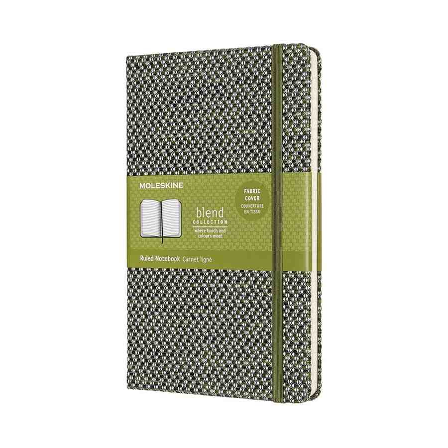 Zápisník má  pevnou, ve hřbetu šitou vazbu potaženou látkou. Obepíná ho pružná páska proti samovolnému otevírání. Obsahuje praktickou vnitřní kapsu, textilní záložku a leták s historií Moleskine. Papír s gramáží 70 g/m2 neobsahuje kyseliny. przeczytaj całość