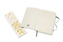 Zelený zápisník s měkkou, ve hřbetu šitou vazbou. Obepíná ho pružná páska proti samovolnému otevírání. Je vybaven pořadačem poznámek, který je vyroben z tkaniny a kartonu, textilní záložkou a letákem s historií Moleskine. Páska, záložka a pořadač poznámek mají stejnou barvu jako zápisník. Papír s... przeczytaj całość
