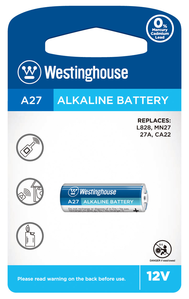 Alkalické primární baterie 12 V, kapacita 26 mAh Provedení = mikrotužkové Typ = A27 Rozměry = 7,7 x 28 mm Výrobce = Westinghouse Alternativní značení:E27A, V27A, V27PX, V27GA, L728, L828, MN27, G27A, GP27A, WE27A, CA22, UM27A, LR27A, K27A, 27AE, A27S przeczytaj całość