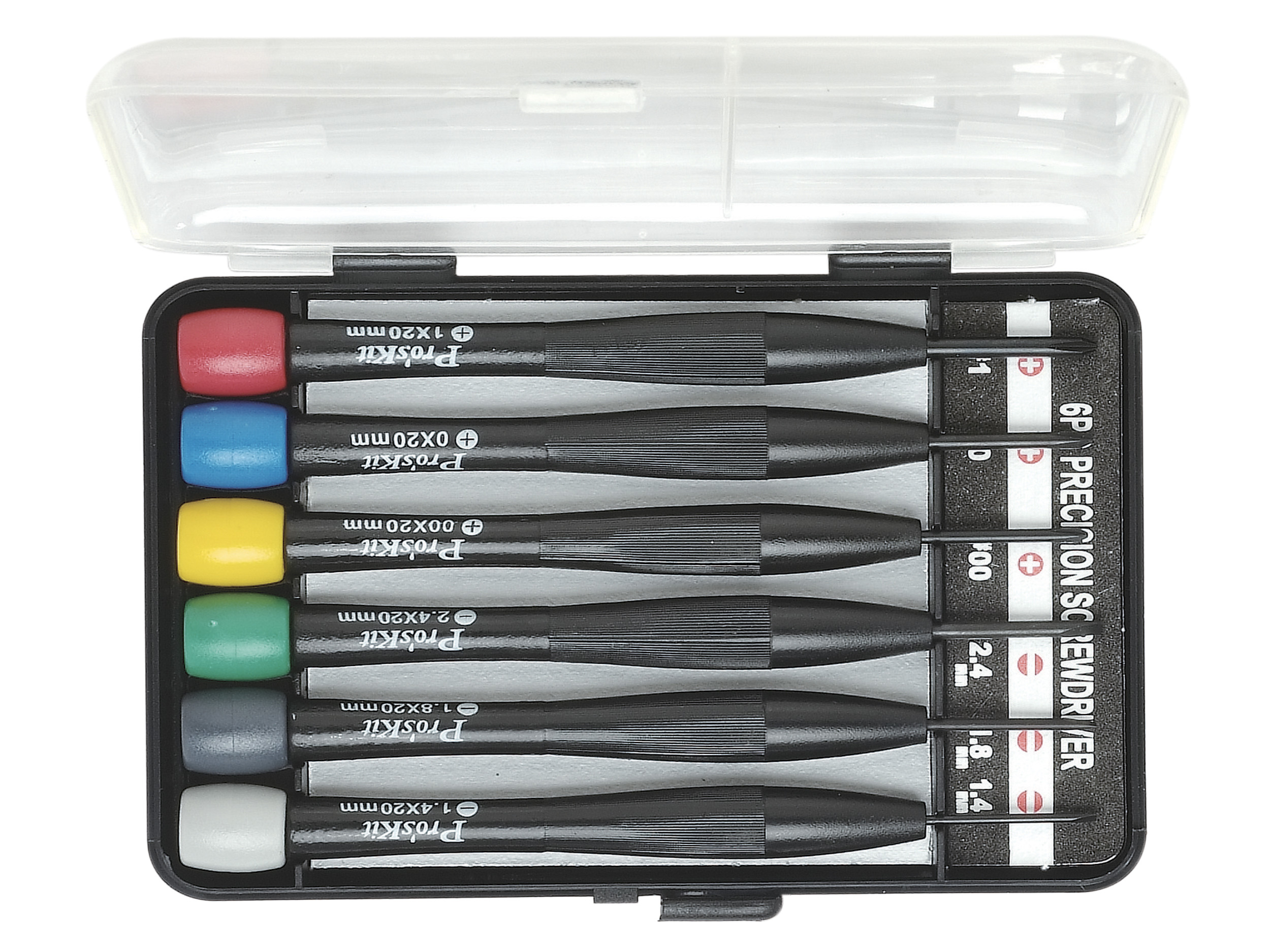 Sada 6 precizních hodinářských šroubováků v plastové krabičce.