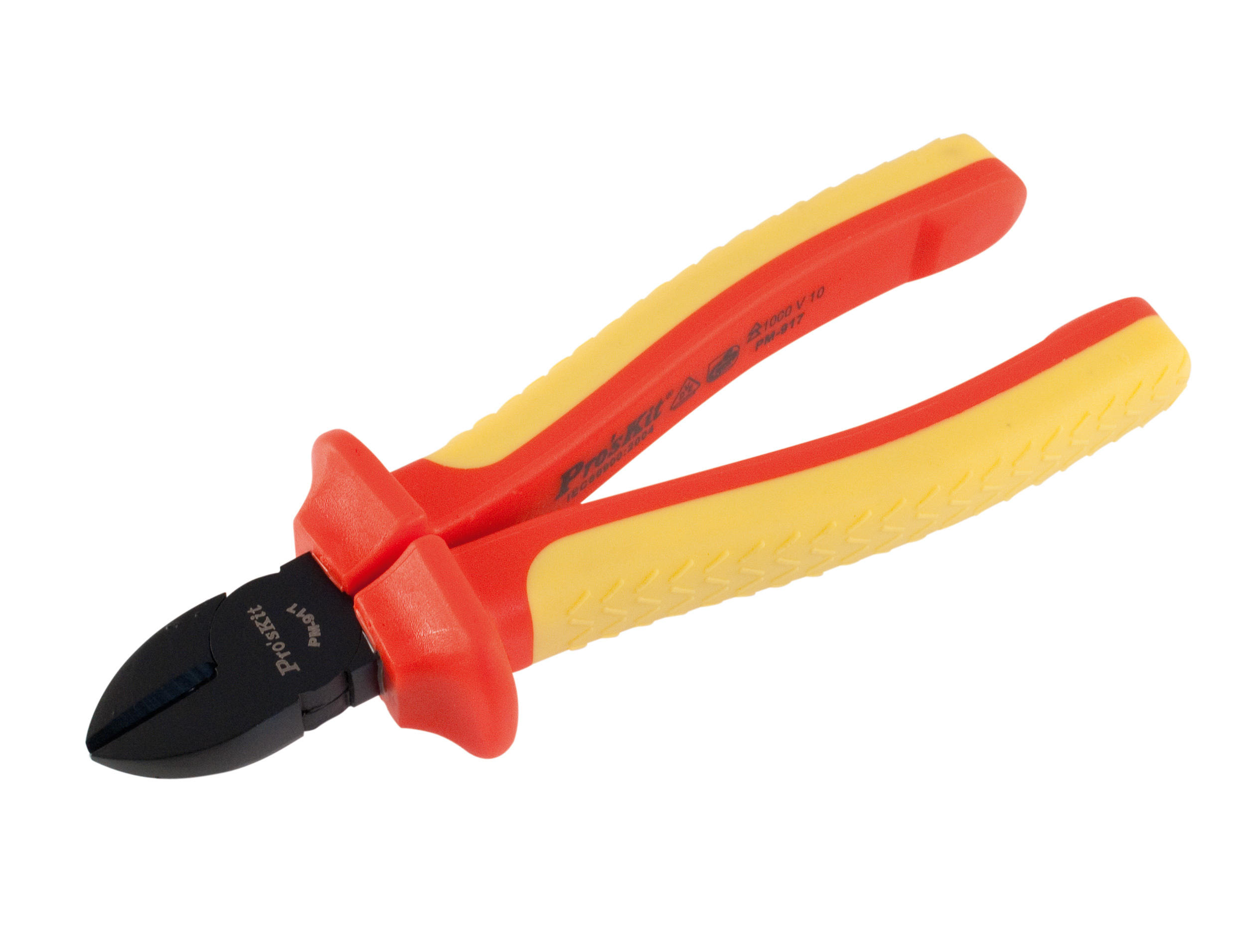 Kleště splňující VDE s kalenými štípacími hranami a teflonovou povrchovou úpravou. Rukojeti