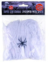 Halloween bílá pavučina 300g se čtyřmi černými pavouky