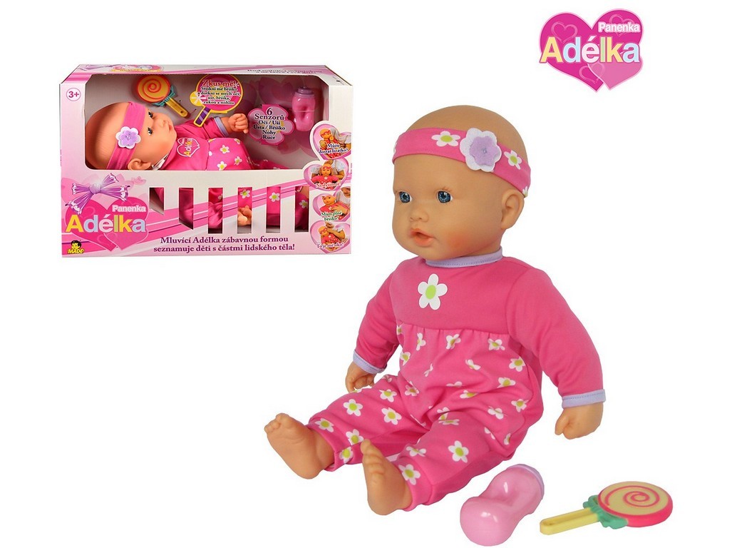 Adélka povídá o lidském těle.Mluvící panenka Adélka zábavnou formou seznamuje děti s částmi lidského těla. Panenka reaguje na stisk ruky, nohy, ouška, úst, očí a bříška vždy nějakou větou.Napájení: 3x baterie 1,5V typu "AA".Panenka měří 40 cm. przeczytaj całość