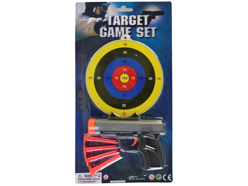Pistole s terčem, 34x18cmHračka je určena pro děti 3+.Rozměr hračky je 14cm.Materiál hračky je plast. przeczytaj całość
