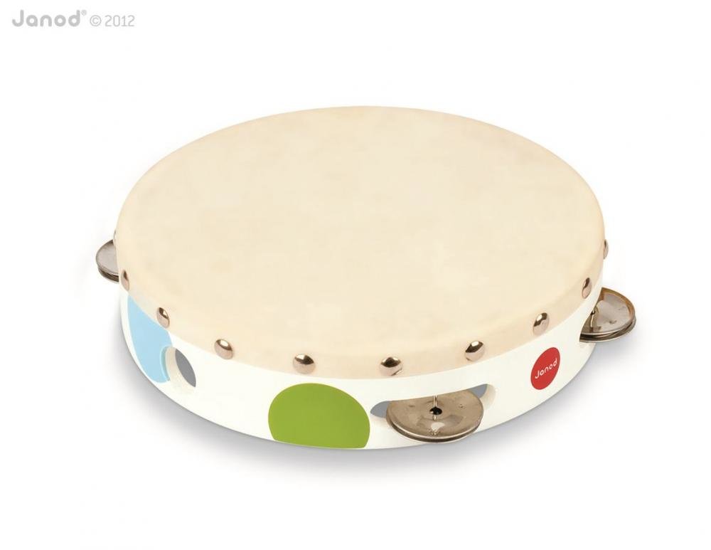 Dřevěná tamburína pro děti Confetti Janod s reálným zvukem a bubnem od 3-8 let