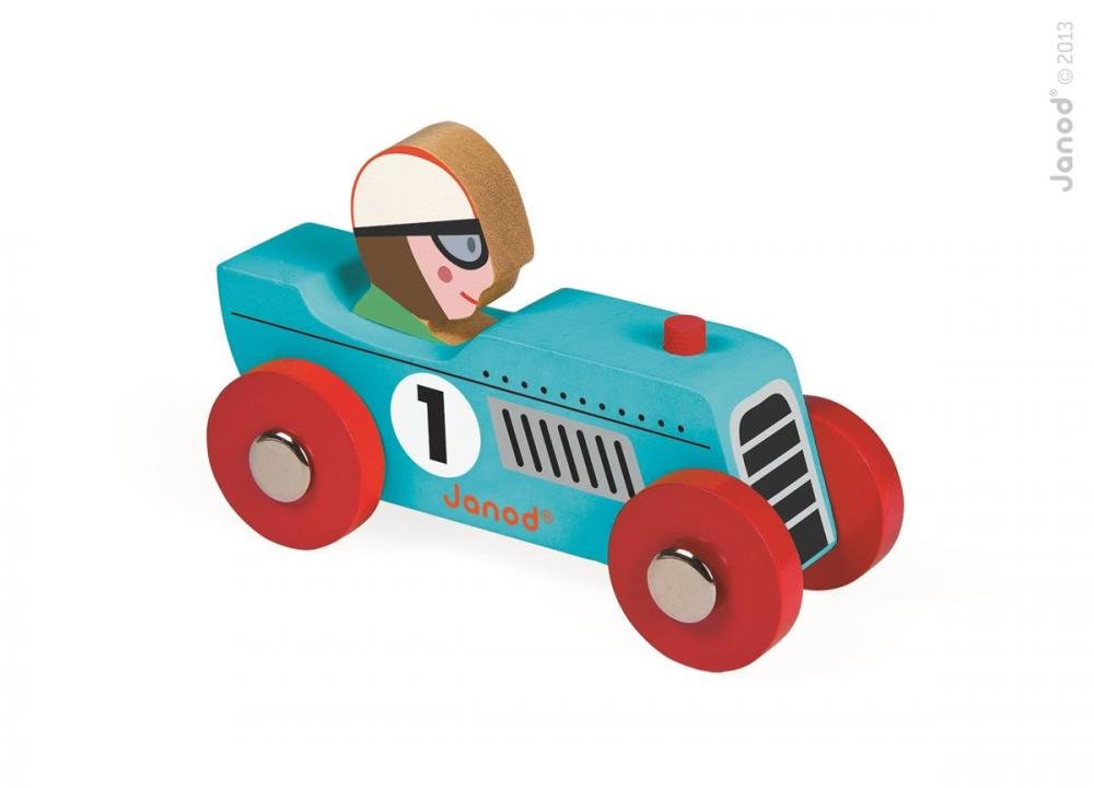 Dřevěné auto Story Racing Retromotor Janod od 1 roku modré nebo stříbrné
