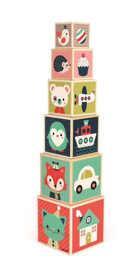 Skládací dřevěná pyramida Zvířata Čísla Věci Janod čtvercová 6 dílů od 1 roku przeczytaj całość