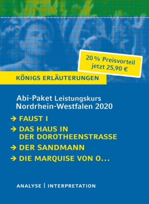 Mit diesem Königs-Erläuterungen-Paket erhalten Sie die vier Lektürehilfen für das Deutsch-Abitur 2020 Leistungskurs in Nordrhein-Westfalen zum Sparpreis von 25,90 EUR (statt 31,60 EUR).