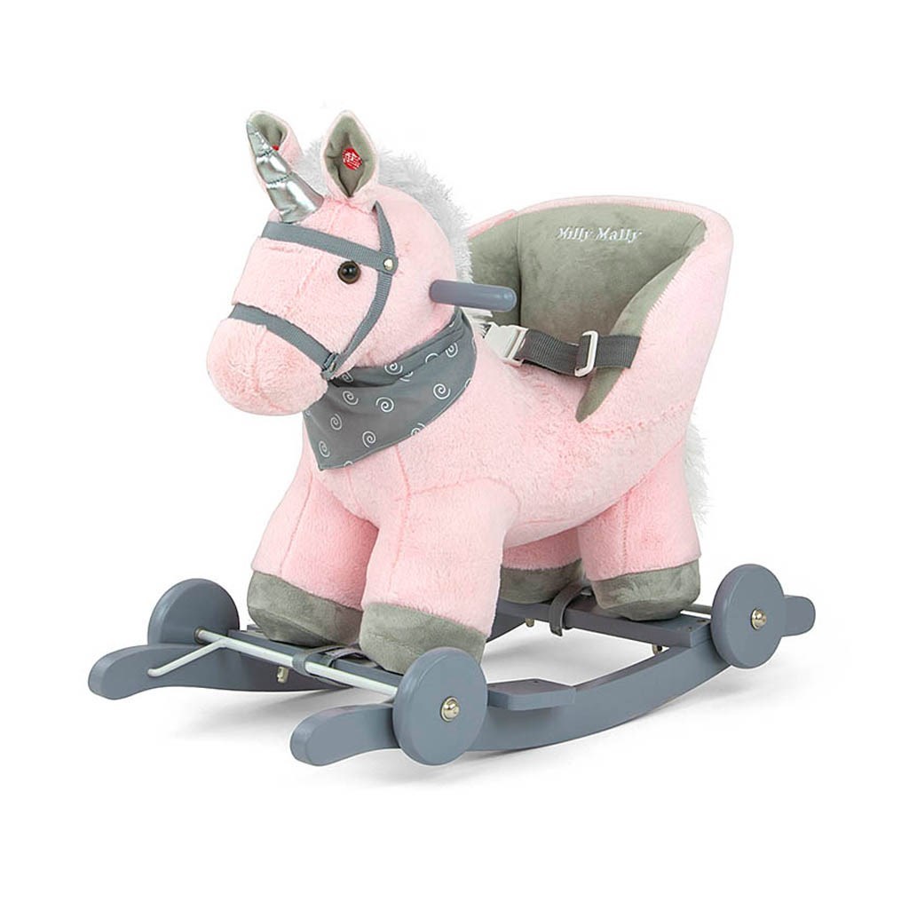 Houpací koník s melodií a kolečky Milly Mally Polly růžový