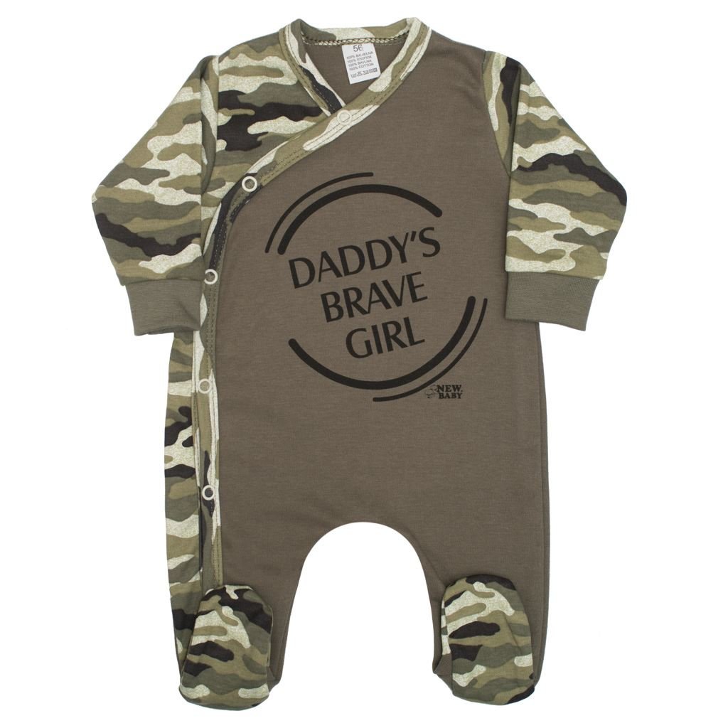 Kojenecký overal české značky New Baby Army boy pro miminka. Dětský overálek je zdoben maskáčovým potiskem a nápisem DADDY´S BRAVE GIRL. Na ručičkách je pružný lem, který netlačí a ulehčí oblékání. Praktické boční zapínání na cvočky po celé délce a mezi nožičkami. Složení: 100% bavlna. przeczytaj całość