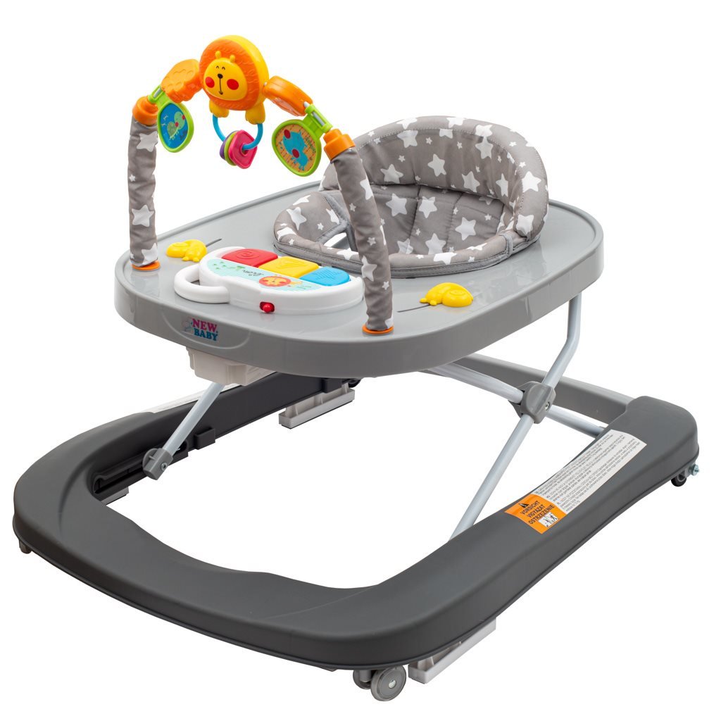 Dětské chodítko NEW BABY v moderních barvách se čtyřmi silikonovými kolečky a bezpečnostními podložkami pomáhá dítěti se stabilitou při chůzi a zároveň přináší svět zábavy díky zabudovanému barevnému piánku a oblouku s veselými hračkami. Piánko obsahuje 3 klávesy a je vyndávací. Oblouk obsahuje...