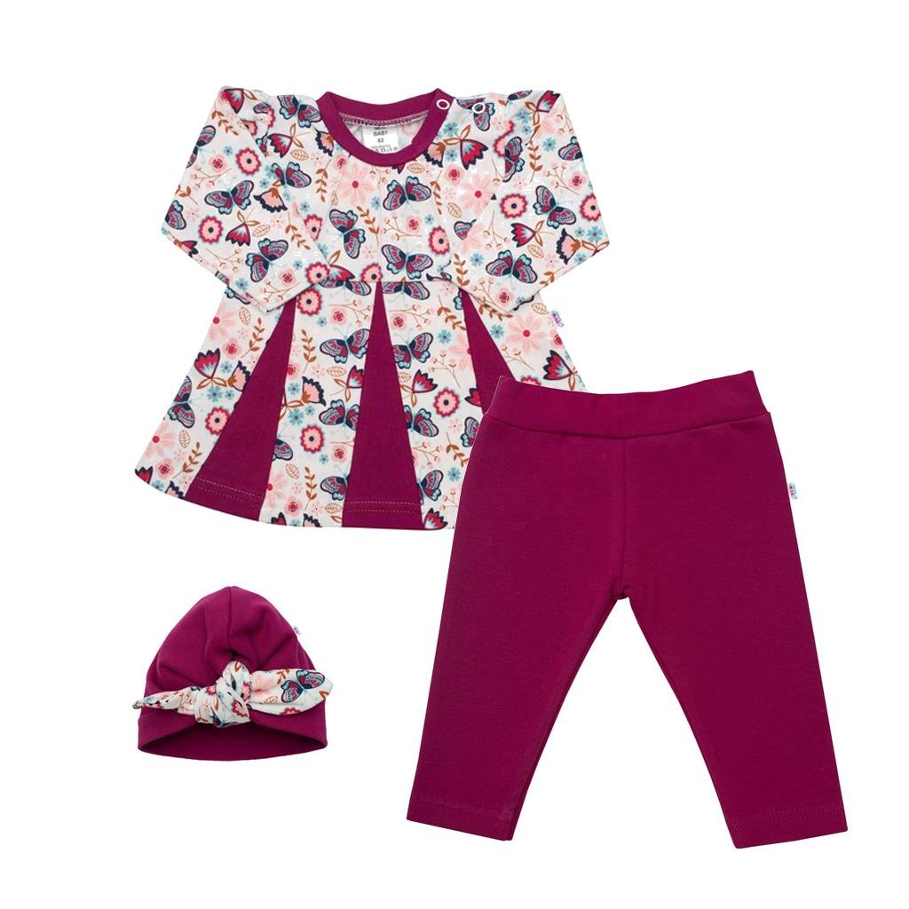 3-dílná holčičí soupravička české značky New Baby Little Girl. Součástí soupravičky jsou legíny, tunika a čepička-turban. Roztomilá kojenecká tunika s dlouhým rukávem Áčkového střihu je celopotištěná motýlky. Na přední straně má krásné prošití a pod krčkem má barevné lemováni. Rukávky tuniky jsou...