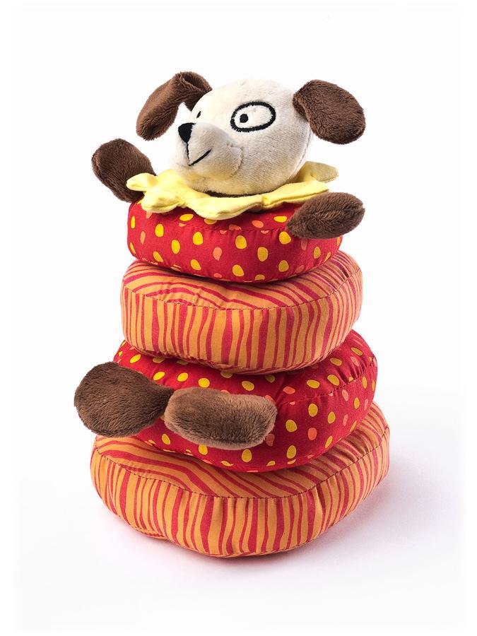 Plyšová skládací věž Sensillo ve tvaru pejska. Věž je vyrobena z pěti části, které se skládají. Pejsek chrastí. Rozměry: výška cca 23 cm, průměr spodní části cca 15 cm. Hračka je vhodná pro děti od narození. przeczytaj całość