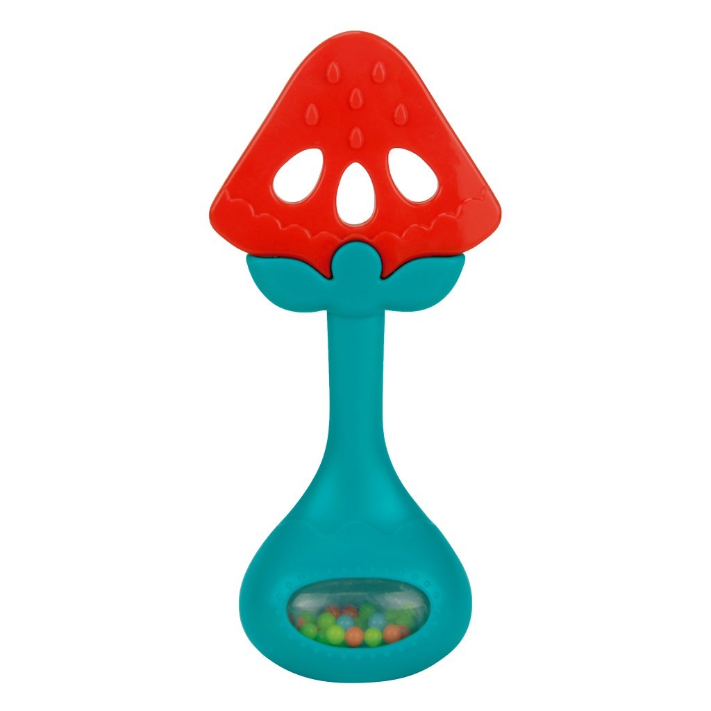 Silikonové kousátko s chrastítkem BAYO jahůdka