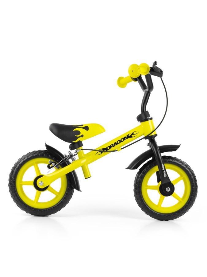 Dětské odrážedlo-kolo Milly Mally Dragon.- nastavitelná výška sedadla- výškově nastavitelná řídítka- stabilní a lehká ocelová konstrukce- protiskluzové rukojeti z gumového materiálu- pohodlné, měkké sedadlo- pěnová kola 10" cm- zvonek- brzda- maximální zatížení až 20 kg- váha 3 kg- délka od...