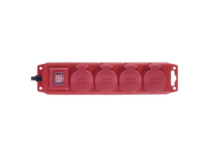 Przedłużacz wyposażony jest w cztery gniazda, które umożliwiają podłączenie kilku urządzeń jednocześnie. Jego kabel neoprenowy jest olejoodporny i odporny na trudne warunki zewnętrzne, co zapewnia długą żywotność nawet przy stałym użytkowaniu na zewnątrz. Dzięki klasie ochrony IP44 urządzenie jest chronione przed wilgocią, dlatego można go bez obaw używać na zewnątrz, na przykład podczas prac w ogrodzie lub na budowie.