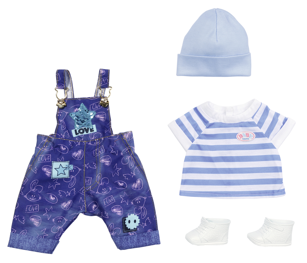 V džínách s laclem to chlapečkovi BABY born obzvláště sluší. Kalhoty jsou ozdobeny roztomilým potiskem a krásnými knoflíky ve tvaru srdíček. Když pohladíte flitrovou hvězdičku, změní barvu z tyrkysové na bronzovou. Kalhoty jsou perfektně sladěny s modro-bíle pruhovaným tričkem, světle modrou...