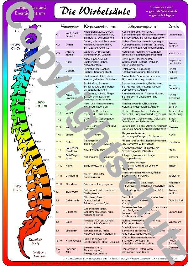 Wirbelsäulenzonen Übersichtskarte (niemiecki)