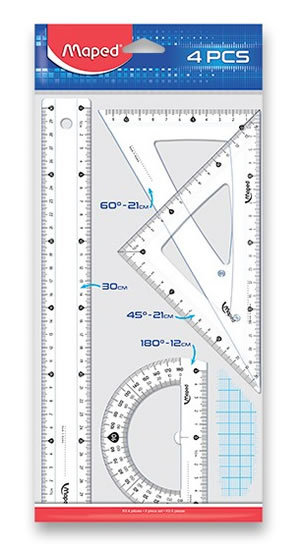 - trójkąt 45°/21 cm - umożliwia łatwe i dokładne rysowanie kątów prostych