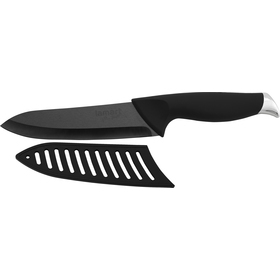 Nůž kuchařský - černá keramikaČepel nože: 15 cmDélka nože: 28 cmVelmi ostrá keramická čepel a ergonomická měkčená rukojeť pro maximální účinek a bezpečné užitíNeovlivňuje vůni a chuť krájených potravinZdravotně nezávadné krájení potravinPo použití výrobek omyjte a osušteVhodné také do myčky na... przeczytaj całość