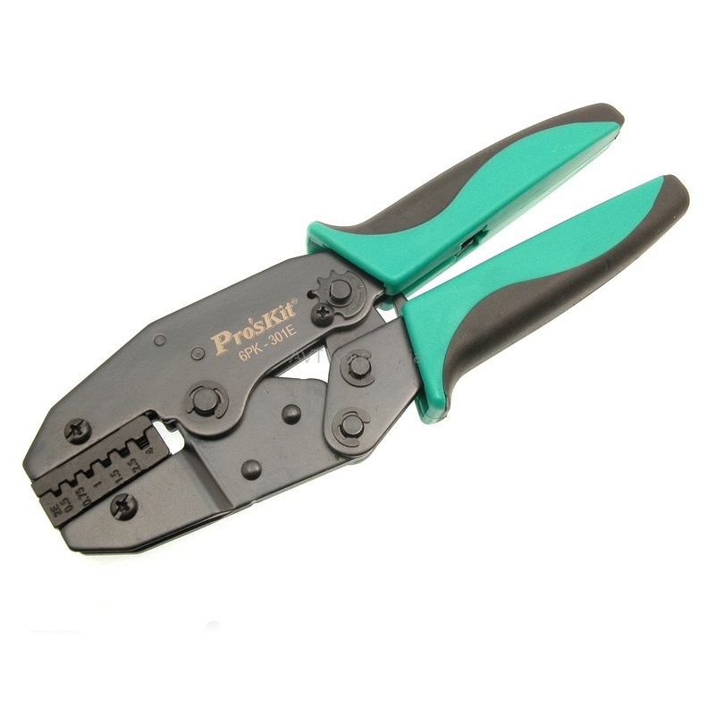 Krimpovací nástroj 6PK-301E (220 mm)Možnost výměny čelistí, upevnění šroubkyNastavení tlaku pro krimpováníUvolňovací mechanismus ráčnyMechanismus šetřící sílu při stiskuPovrchová úprava: černý oxidMateriál: střední uhlíková ocel S45CMateriál čelistí: chrom-molybdenová slitina ocelí AISI(SAE)...
