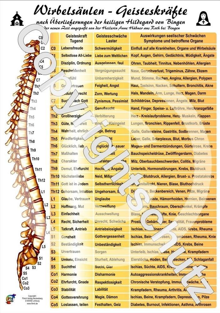 Wirbelsäulen-Geisteskräfte Übersichtskarte DIN A4 (niemiecki)