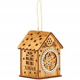 Dřevěný domeček se zvonky svítící 6,5x9 cm, vánoční ozdoba