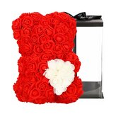Medvídek z růží 30 cm, červený s bílým srdcem SPRINGOS ROSE BEAR